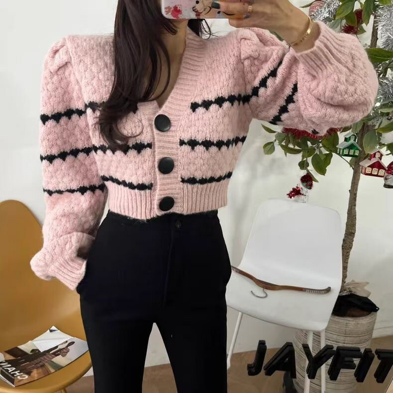 2024年の秋冬にぴったりな可愛いニットセーターカーディガンです。パフスリーブデザインが特徴で、優しい印象を与えます。フリーサイズで、ホワイト、ピンク、グレーの3色からお選びいただけます。どんなコーディネートにも合わせやすく、これからの季節に大活躍間違いなしのアイテムです。