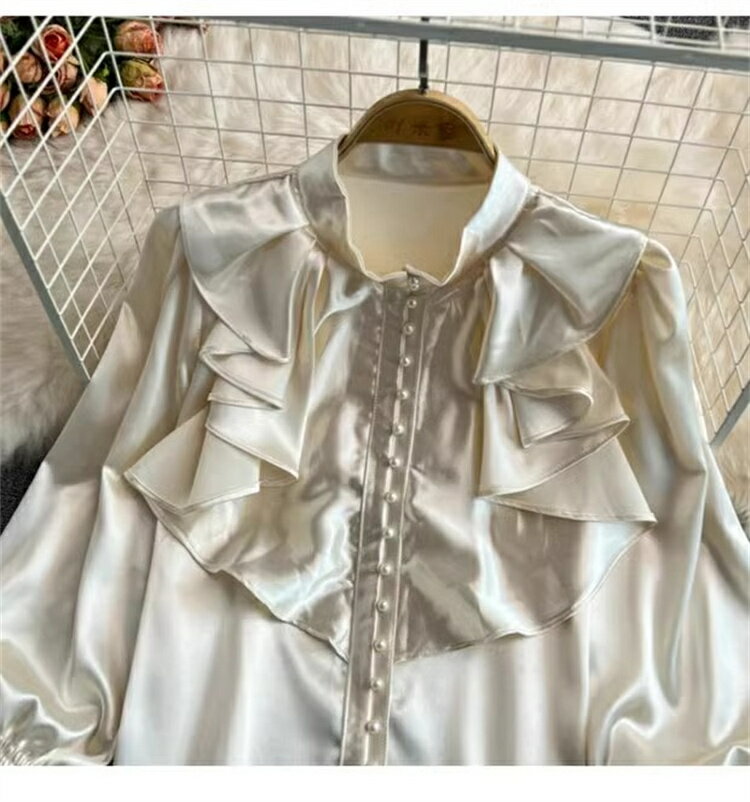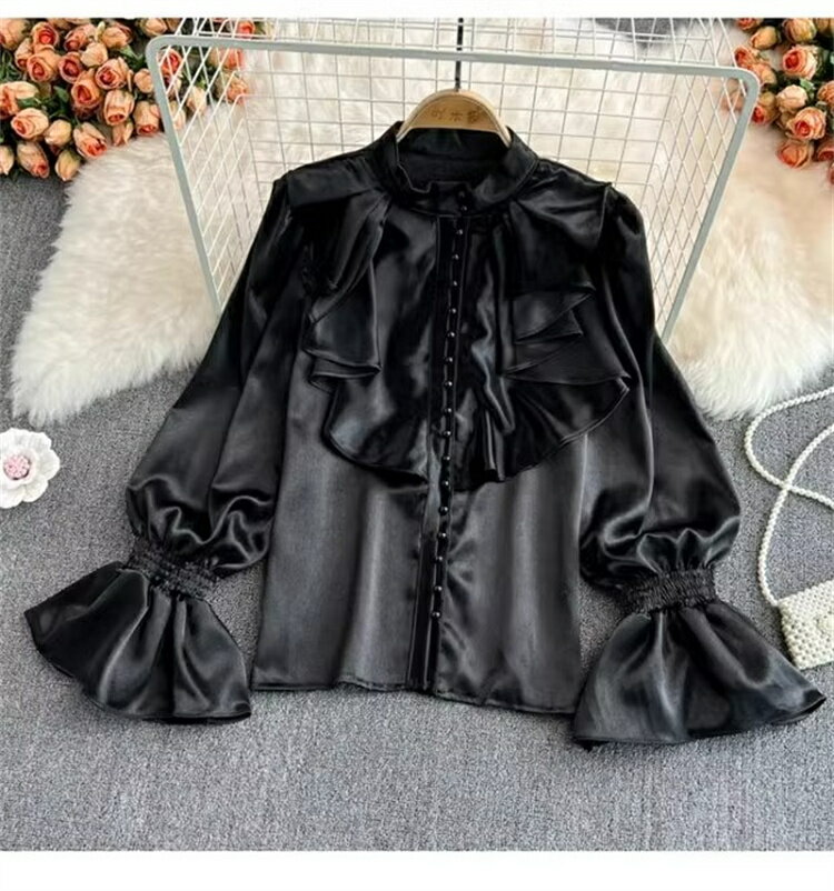 2024新年大感謝祭の特別な一着、INSスタイルのホーンスリーブサテンシャツです。
