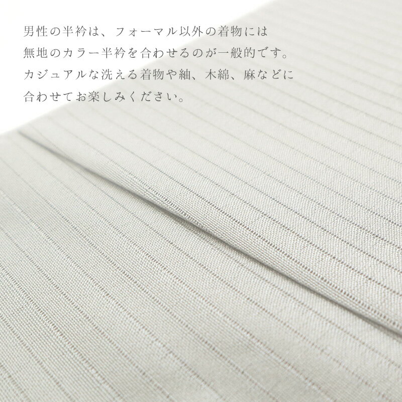 洗えるメンズカラー半衿 洗濯機で丸洗いができ、シワになりにくくアイロンいらず。 色褪せもほとんどない洗える素材のメンズ用の洗える半襟です。 男性の半襟は、フォーマル以外の着物の時は無地のカラー半襟が一般的です。 カジュアルな洗える着物や紬、木綿、麻などに合わせてお召しください。 お手入れ簡単、洗濯機で丸洗いOK! 汚れても洗えるポリエステル素材の半衿は、汚れても気軽に洗え、日常的に和服を着られる方にオススメです。