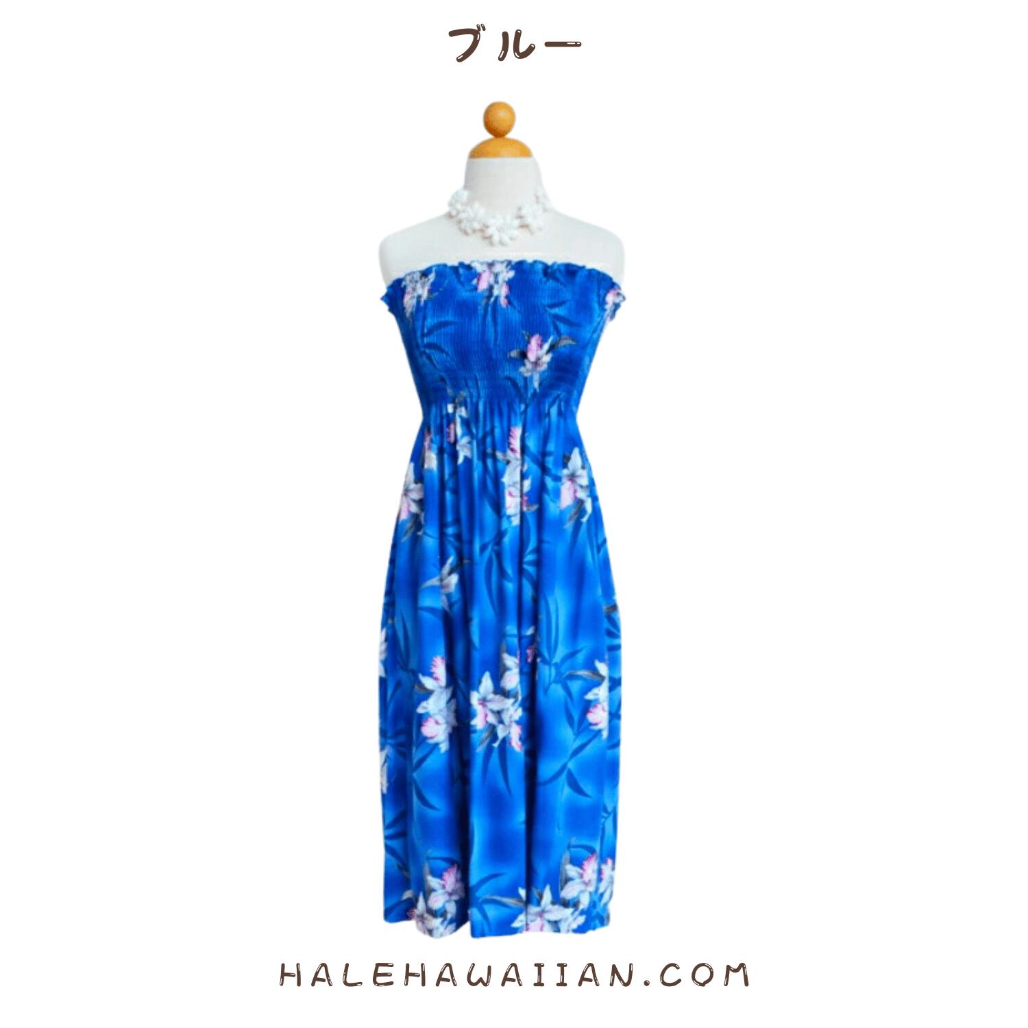 【生地素材】 レーヨン100%?サイズ/寸法ワンサイズ (XS〜XLまで) バスト: 約51cm〜約116cm 丈: 約90cm (ストラップを除いた長さ)?その他商品説明ハワイアンミドル丈(ひざ丈)ドレスです。