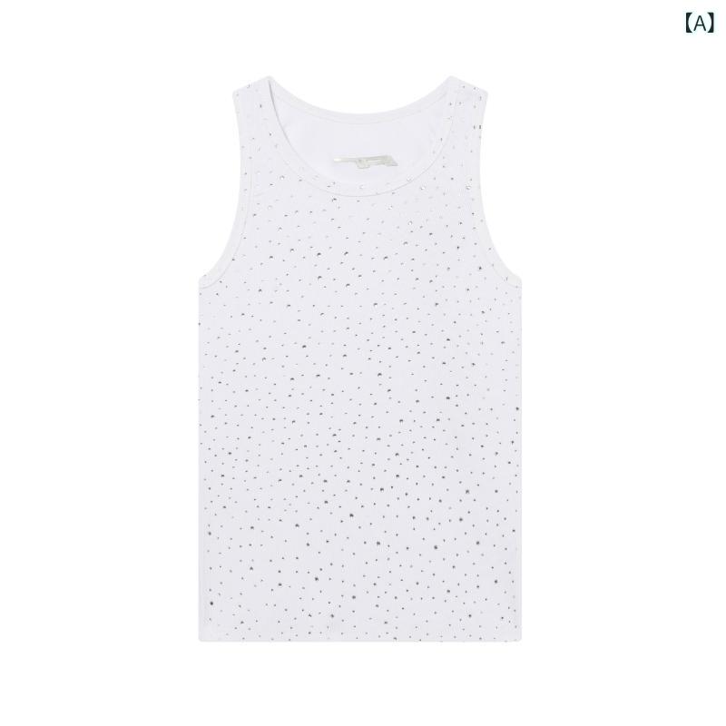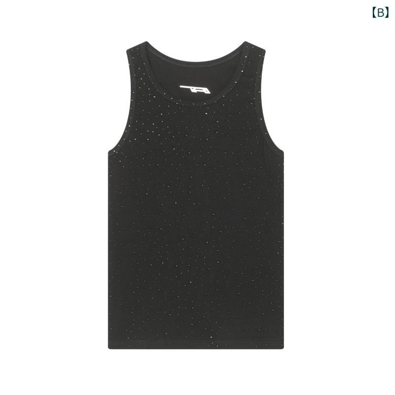 ・カテゴリ: スポーツタンクトップ・スタイル: アメリカンヴィンテージ・主な素材: 綿100%・柄: レター・カラー展開: ホワイト, ブラック・サイズ展開: M, L, XL・フィット: ルーズ・デザインディテール: ラインストーン・裾デザイン: ストレートヘム・厚さ: 標準