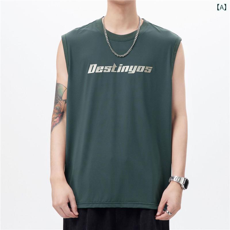 ・カテゴリ: スポーツベスト・スタイル: スポーツ・フィット: ルーズ・素材: ナイロン85.3%、ポリウレタン14.7%・生地: アイスシルク・柄: アルファベット・デザイン: プリント・裾デザイン: ストレートヘム・厚さ: 薄手・シーン: カジュアル・対象: 若年層・加工: プリント、染色・カラー展開: ダークグリーン、ホワイト、ブラック・サイズ展開: M、L、XL、XXL、3XL、4XL