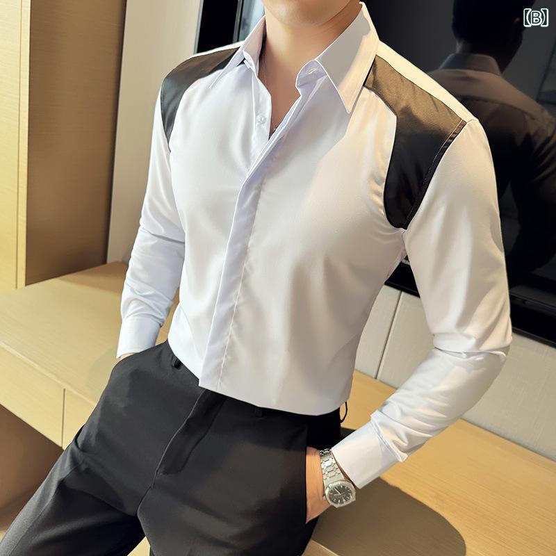 ・カテゴリ: シャツ・スタイル: 韓国風・タイプ: カーディガン・フィット: スリム・ネックライン: ポイントカラー・袖丈: 長袖・柄: 無地・厚さ: 普通・主な素材: ポリエステル 81-90%・機能: 色あせしにくい・生地番手: 30・加工: 色織り・シーン: カジュアル・性別: 男性・カラー展開: ブラック、ホワイト・サイズ展開: M、L、XL、XXL、XXXL