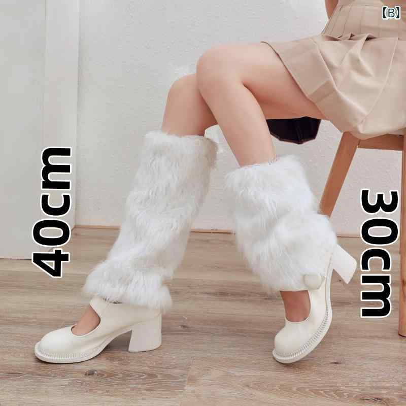 ・主な素材: ポリエステル80~90%・機能: 摩擦軽減・柄: 無地・対象: レディース・対象年齢: 18~40歳・筒丈: ミドル丈・カラー展開: ホワイト、ブラック・サイズ展開: 20cm、30cm、40cm・毛質タイプ: ロールファー、ストレートファー・スタイル: トレンド