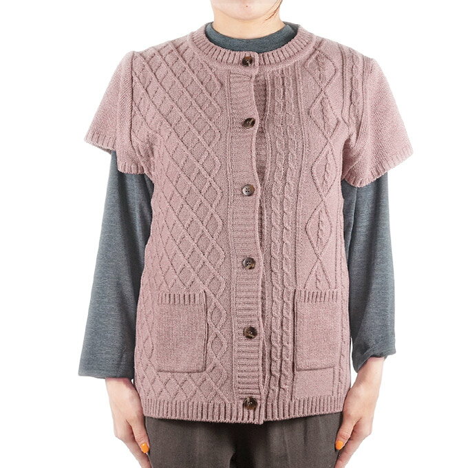 婦人服/フリー/前開き/ベスト/レディース/シニアファッション/暖か/秋冬ふんわりソフト、キャップ袖アルパカ混レディースベスト アルパカ混のレディースベスト。