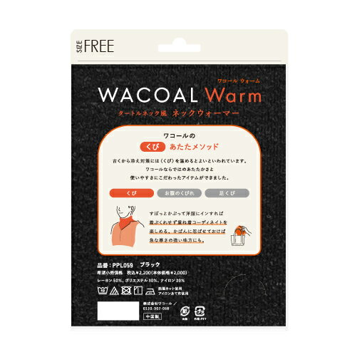 商品名 ワコール タートルネック風ネックウォーマー/ブラック サイズ フリーサイズ カラー ブラック 素材 レーヨン50%/ポリエステル30%/ナイロン20% 仕様 ワコールのくびあたたメソッド すぽっとかぶって洋服にインすれば着ぶくれせず重ね着コーディネートを楽しめる。