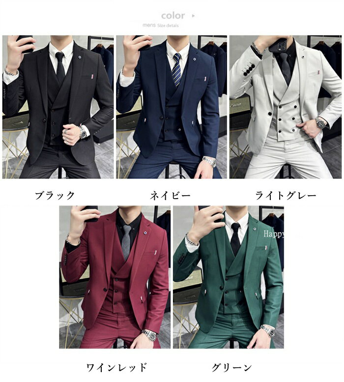商品の詳細 内容 ○ジャケット+ベスト+パンツ 素材 ポリエステル ●伸縮性:少し ●生地厚さ:普通 生産国 中国 カラー 写真通り サイズ(単位:cm) S/M/L/XL/2XL/3XL/4XL 商品について