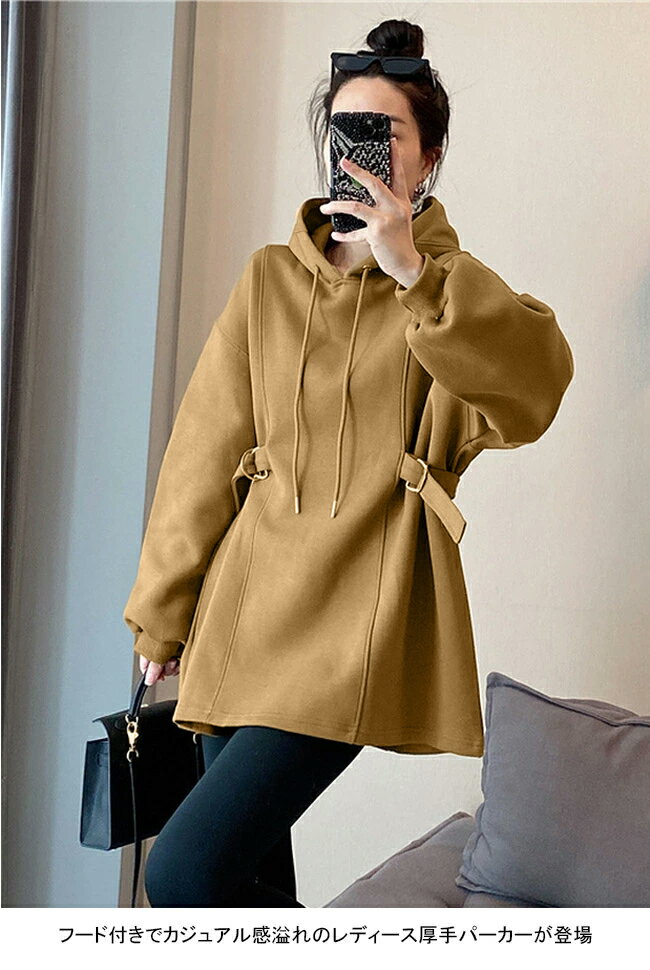■厚手でお洒落なレディースパーカ、ゆったりしてカジュアル感溢れ! フード付きでカジュアル感溢れのレディース厚手パーカーが登場! シンプルに洗練された大人カジュアルを演出してくれるプルオーバーパーカー。