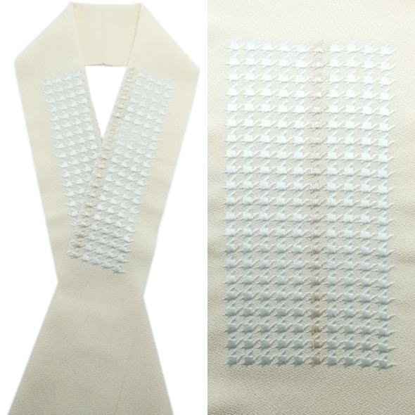 商品説明 「粋と粋(IKI to SUI)」のかわいい柄が刺繍された半襟です。 ご家庭で洗える素材なので、お手入れも楽々。