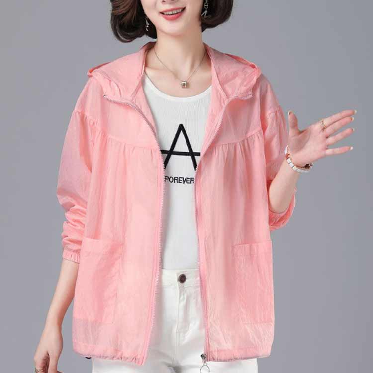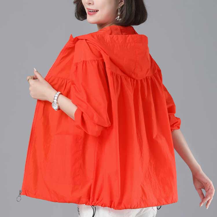 軽やかなシアー素材でお作りした、フード付きブルゾン。