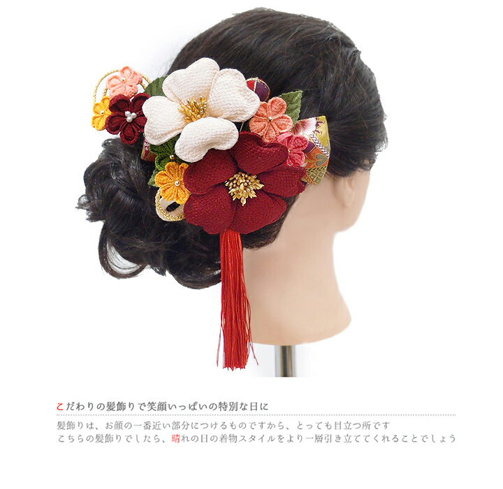 髪飾り 成人式 振袖 袴 2点セット 赤 白 黄色 ピンク ちりめん 和柄 大人 浴衣 かんざし 簪 卒業式 フォーマル 結婚式 花飾り つまみ細工 リボン ちりめん 髪飾り No.9-3767 サイズ表 大きい花 縦 約18cm (房含む)× 横 約11cm × 高さ 約5cm 小さい花 直径 約5cm × 高さ 約2cm