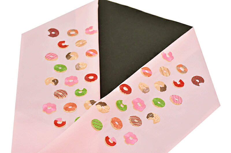 すべらかな生地の上に見ているだけで楽しくなるカラフルなドーナツ柄があらわされました。