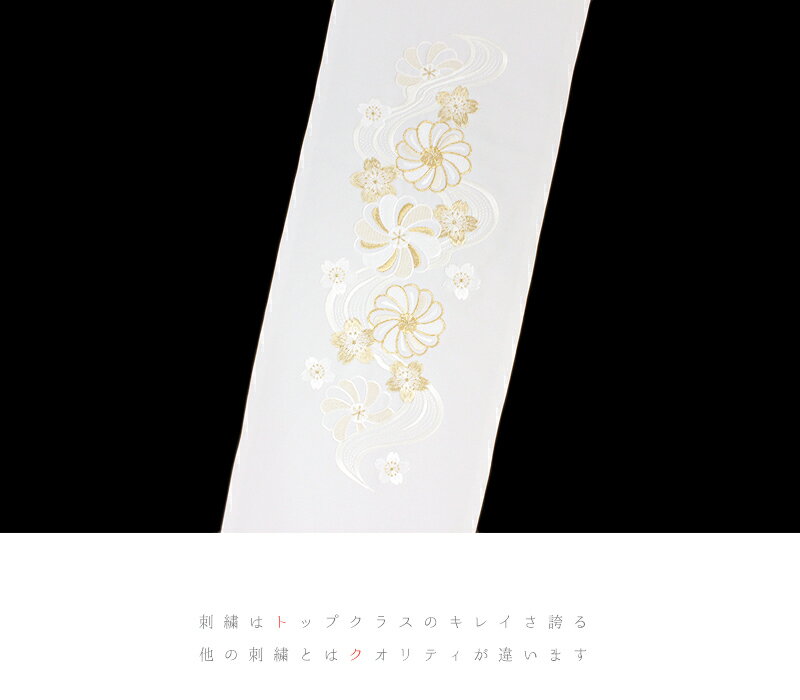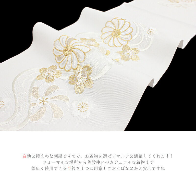 半衿 半襟 振袖 成人式 豪華刺繍 白地 金糸 流水 ねじ梅 シルエリー Silelly おしゃれ半衿 刺繍半衿 お洒落着用 レトロ アンティーク モダン 高級 成人式 結婚式 前撮り 卒業式 謝恩会 入学式 卒園式 入園式 七五三 お宮参り お茶会 パーティー 観劇 かわいい ポリエステル 日本製 No.10-0736 サイズ表 cm サイズ 長さ:約110cm 幅:約16.0cm 商品詳細