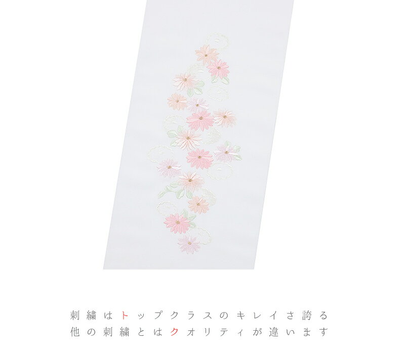 半衿 半襟 振袖 成人式 豪華刺繍 白地 淡いピンク糸 淡いオレンジ色糸 菊 菊花 シルエリー Silelly おしゃれ半衿 刺繍半衿 シンプル パステル お洒落着用 レトロ アンティーク モダン 高級 成人式 結婚式 前撮り 卒業式 謝恩会 入学式 卒園式 入園式 七五三 お宮参り お茶会 パーティー 観劇 かわいい ポリエステル 日本製 No.10-0733 サイズ表 cm サイズ 長さ:約110cm 幅:約16.0cm 商品詳細
