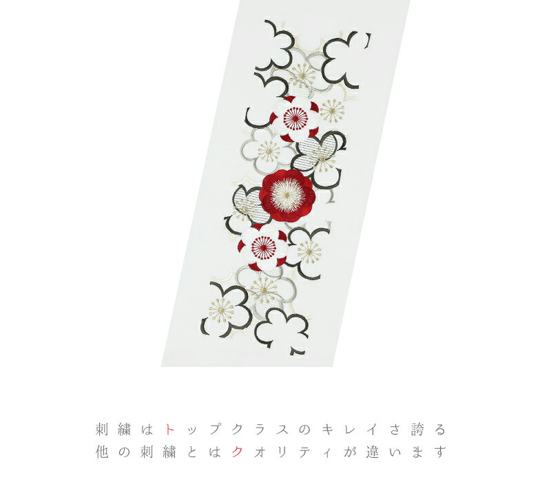 半衿 半襟 振袖 成人式 豪華刺繍 梅 白地 黒糸 金糸 グレー糸 シルエリー Silelly おしゃれ半衿 刺繍半衿 お洒落着用 レトロ アンティーク モダン 高級 成人式 結婚式 前撮り 卒業式 謝恩会 入学式 卒園式 入園式 七五三 お宮参り お茶会 パーティー 観劇 かわいい ポリエステル 日本製 メール便OK No.10-4759 サイズ表 cm サイズ 長さ:約110cm 幅:約16.0cm 商品詳細