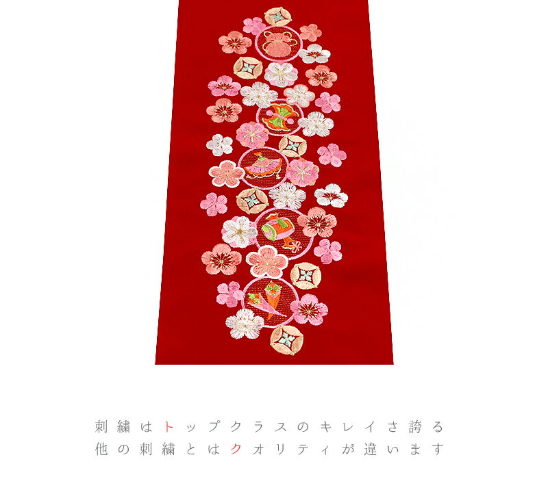 半衿 半襟 振袖 成人式 豪華刺繍 赤色地 ピンク サーモンピンク 薄黄緑 金 金糸 白 オフホワイト 薄橙 梅 宝尽くし 扇 七宝 太鼓 和柄 シルエリー Silelly おしゃれ半衿 刺繍半衿 フォーマル 礼装 お洒落 レトロ アンティーク 高級 成人式 結婚式 前撮り 卒業式 謝恩会 入学式 卒園式 入園式 七五三 お宮参り お茶会 パーティー 観劇 かわいい ポリエステル 日本製 No.10-5184 サイズ表 サイズ 長さ:約113.5cm 幅:約16.5cm 商品詳細