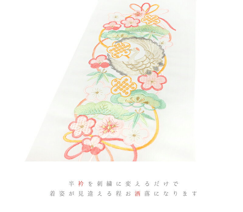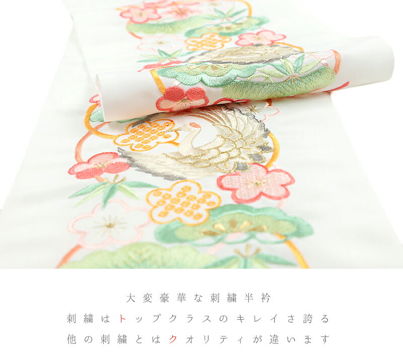 ふっくらとした刺繍でとても高級感があり、多色使いなのでお着物に何色をもってきても好相性! 華やかさも格段にアップします! 実は衿元や衿合わせは着物姿を見た時に最も目が行くポイントといっても過言ではありません。