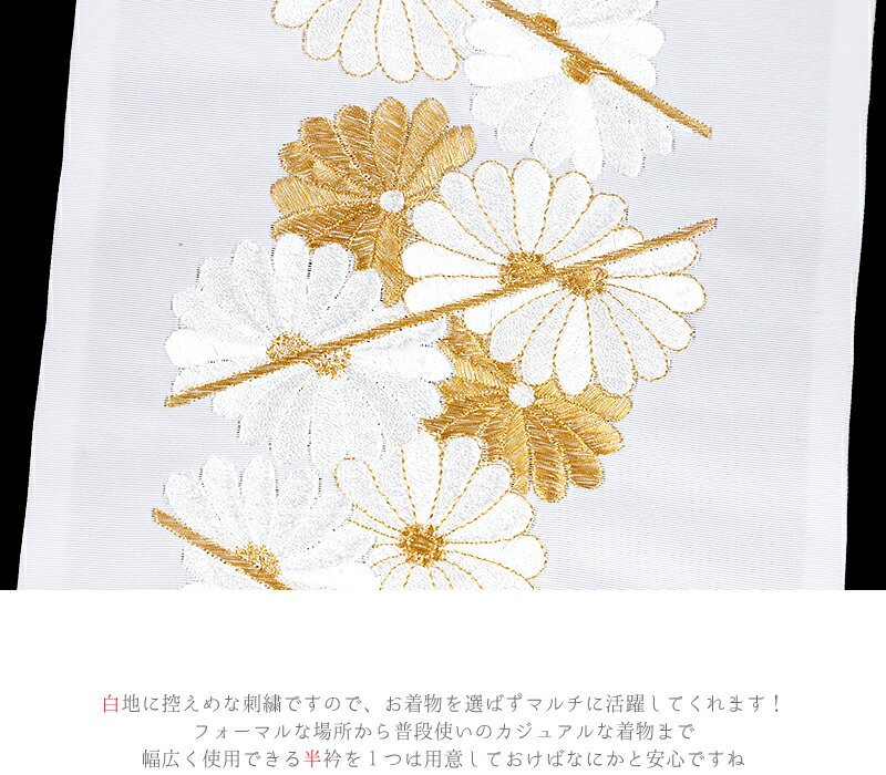 半衿 半襟 振袖 成人式 豪華刺繍 白地 白 金 金糸 オフホワイト 菊 花 和柄 京和彩 おしゃれ浪漫 おしゃれ半衿 刺繍半衿 フォーマル 礼装 お洒落 レトロ アンティーク 高級 成人式 結婚式 前撮り 卒業式 謝恩会 入学式 卒園式 入園式 七五三 お宮参り お茶会 パーティー 観劇 かわいい ポリエステル 日本製 No.10-4996 サイズ表 サイズ 長さ:約115.0cm 幅:約16.5cm 商品詳細