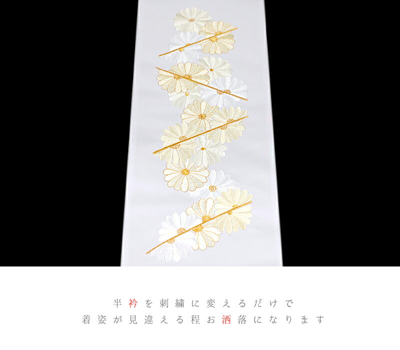■新品・未使用品 コメント 輝きと豪華刺繍でコーディネートに差をつける、 何枚も欲しくなるような色柄が魅力的なお洒落半衿のご紹介です。