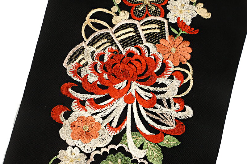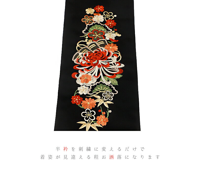 半衿 半襟 振袖 成人式 豪華刺繍 黒地 赤 サーモンピンク ベージュ 薄緑 金 金糸 乱菊 菊 松竹梅 桜 さくら 和柄 京和彩 おしゃれ浪漫 おしゃれ半衿 刺繍半衿 フォーマル 礼装 お洒落 レトロ アンティーク 高級 成人式 結婚式 前撮り 卒業式 謝恩会 入学式 卒園式 入園式 七五三 お宮参り お茶会 パーティー 観劇 かわいい ポリエステル 日本製 No.10-5244 サイズ表 サイズ 長さ:約115.0cm 幅:約16.5cm 商品詳細