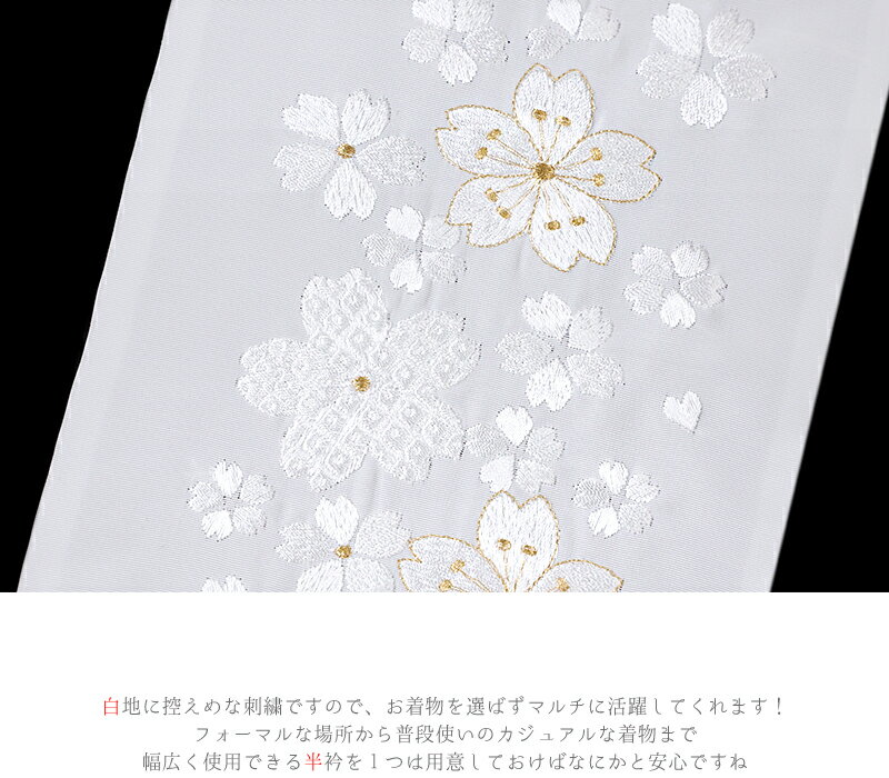 半衿 半襟 振袖 成人式 豪華刺繍 白地 白 金 金糸 オフホワイト 桜 鹿の子 さくら 和柄 京和彩 おしゃれ浪漫 おしゃれ半衿 刺繍半衿 フォーマル 礼装 お洒落 レトロ アンティーク 高級 成人式 結婚式 前撮り 卒業式 謝恩会 入学式 卒園式 入園式 七五三 お宮参り お茶会 パーティー 観劇 かわいい ポリエステル 日本製 No.10-5256 サイズ表 サイズ 長さ:約115.0cm 幅:約16.5cm 商品詳細