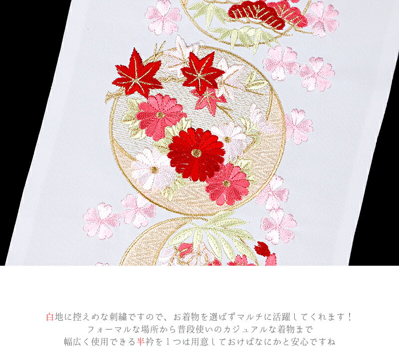 半衿 半襟 振袖 成人式 豪華刺繍 白地 赤 ピンク 薄ピンク 桃色 薄黄緑 白 金 金糸 オフホワイト パステルカラー 桜 菊 松竹梅 藤 月 楓 紅葉 花 さくら 和柄 京和彩 おしゃれ浪漫 おしゃれ半衿 刺繍半衿 フォーマル 礼装 お洒落 レトロ アンティーク 高級 成人式 結婚式 前撮り 卒業式 謝恩会 入学式 卒園式 入園式 七五三 お宮参り お茶会 パーティー 観劇 かわいい ポリエステル 日本製 No.10-5295 サイズ表 サイズ 長さ:約115.0cm 幅:約16.5cm 商品詳細