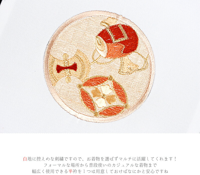 半衿 半襟 振袖 成人式 豪華刺繍 白地 サーモンピンク 紅葉色 ベージュ 赤 緑 橙 金 金糸 オフホワイト 宝尽くし 七宝繋ぎ 菱 花菱 円 丸 和柄 吉祥文様 京和彩 おしゃれ浪漫 おしゃれ半衿 刺繍半衿 フォーマル 礼装 お洒落 レトロ アンティーク 高級 成人式 結婚式 前撮り 卒業式 謝恩会 入学式 卒園式 入園式 七五三 お宮参り お茶会 パーティー 観劇 かわいい ポリエステル 日本製 No.10-5423 サイズ表 サイズ 長さ:約115.0cm 幅:約16.5cm 商品詳細