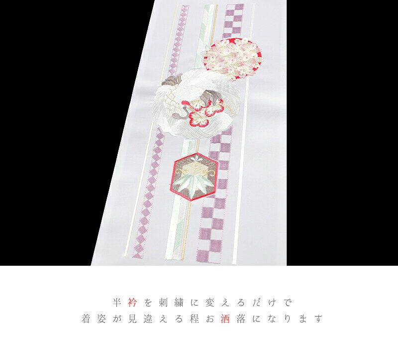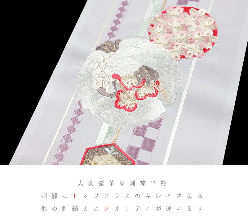 半衿 半襟 振袖 成人式 豪華刺繍 白地 オフホワイト 薄紫 赤 ピンク 緑 金 花 桜 鶴 鳥 格子 矢羽根 菱 笹 花丸 和柄 シルエリー Silelly おしゃれ半衿 刺繍半衿 お洒落着用 レトロ アンティーク モダン 高級 成人式 結婚式 前撮り 卒業式 謝恩会 入学式 卒園式 入園式 七五三 お宮参り お茶会 パーティー 観劇 かわいい ポリエステル 日本製 No.10.10-5452 サイズ表 サイズ 長さ:約110cm 幅:約16.0cm 商品詳細