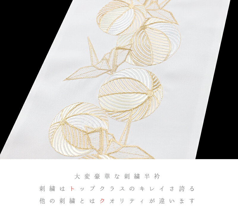 半衿 半襟 振袖 成人式 豪華刺繍 白地 オフホワイト 金 鞠 まり 折鶴 鳥 大正浪漫 和柄 シルエリー Silelly ワンポイント おしゃれ半衿 刺繍半衿 お洒落着用 レトロ アンティーク モダン 高級 成人式 結婚式 前撮り 卒業式 謝恩会 入学式 卒園式 入園式 七五三 お宮参り お茶会 パーティー 観劇 かわいい ポリエステル 日本製 No.10-5466 サイズ表 サイズ 長さ:約110cm 幅:約16.0cm 商品詳細