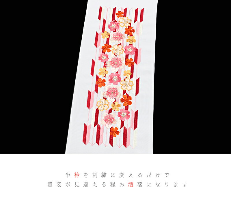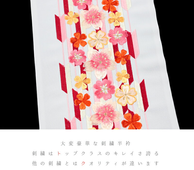 半衿 半襟 振袖 成人式 豪華刺繍 白地 オフホワイト 赤 ピンク 橙色 オレンジ 金 花 桜 矢羽根 和柄 シルエリー Silelly おしゃれ半衿 刺繍半衿 お洒落着用 レトロ アンティーク モダン 高級 成人式 結婚式 前撮り 卒業式 謝恩会 入学式 卒園式 入園式 七五三 お宮参り お茶会 パーティー 観劇 かわいい ポリエステル 日本製 No.10.10-5491 サイズ表 サイズ 長さ:約110cm 幅:約16.0cm 商品詳細