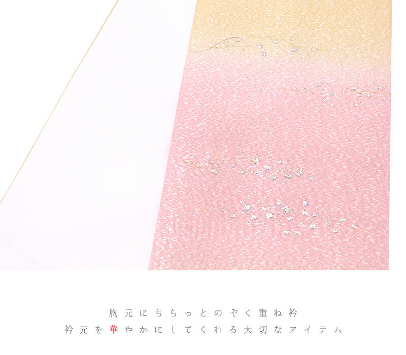 重ね衿 伊達衿 正絹 ピンク 黄色 花やわらぎ 金彩 京都 グラデーション ぼかし ラメ 襟ピン付き 友禅染 綸子 礼装用 フォーマル 高級 日本製 お洒落 上品 可愛い 大人 使える 簡単 ちりめん 訪問着 振袖 色無地 成人式 結婚式 卒業式 入学式 卒園式 入園式 七五三 お宮参り お茶会 パーティー No.10-5837 サイズ表 サイズ 長さ 約127cm × 幅 約11cm(広げた状態) 商品詳細