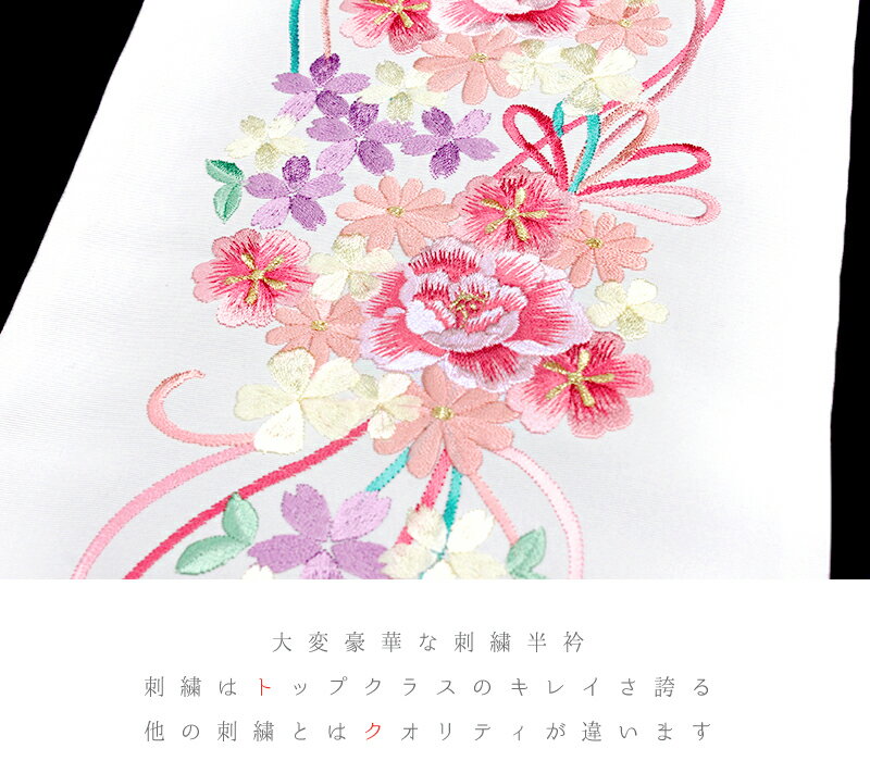 ■カラー ・地色:すっきりと上品な白地 ・刺繍糸:可憐な淡いピンク 濃いピンク 青緑 紫 金 など
