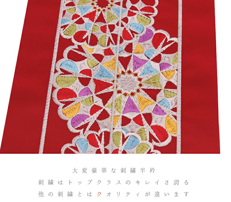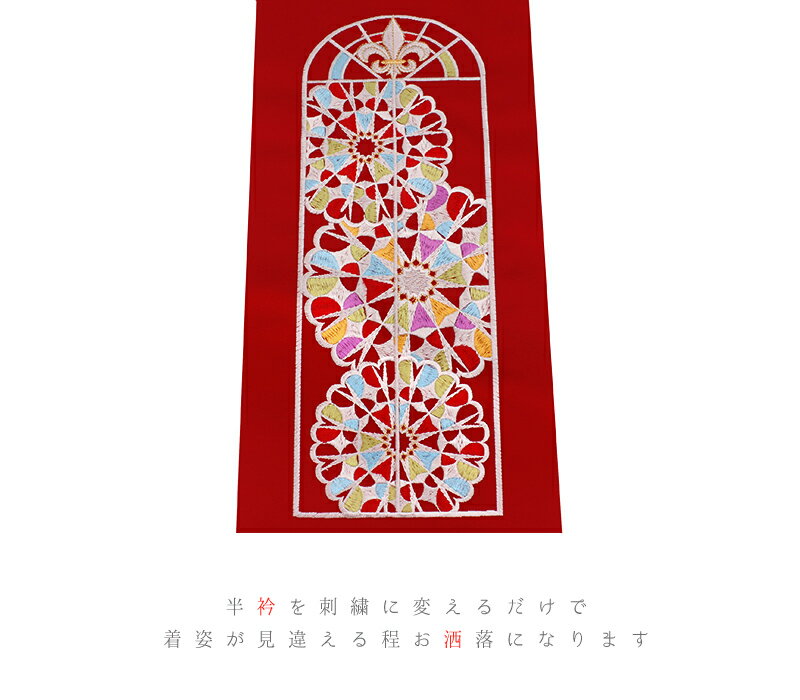 半衿 半襟 振袖 成人式 豪華刺繍 赤 薄いグレー 黄緑 赤 紫 水色 渋黄色 金 ゴールド ステンドグラス 窓 花 幾何学模様 カラフル マルチカラー シルエリー Silelly おしゃれ半衿 刺繍半衿 お洒落着用 レトロ 古典 アンティーク モダン 高級 成人式 結婚式 前撮り 卒業式 謝恩会 入学式 卒園式 入園式 七五三 お宮参り お茶会 パーティー 観劇 かわいい ポリエステル 日本製 No.10-6021 サイズ表 サイズ 長さ:約115cm 幅:約16.5cm 商品詳細