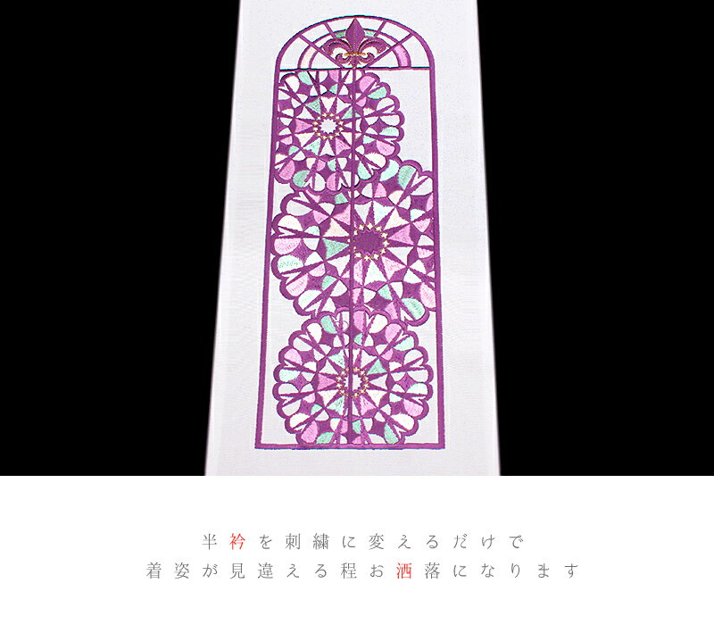 半衿 半襟 振袖 成人式 豪華刺繍 白地 オフホワイト 紫 ピンク 緑 黄色 水色 金 ゴールド ステンドグラス 窓 花 幾何学模様 カラフル マルチカラー シルエリー Silelly おしゃれ半衿 刺繍半衿 お洒落着用 レトロ 古典 アンティーク モダン 高級 成人式 結婚式 前撮り 卒業式 謝恩会 入学式 卒園式 入園式 七五三 お宮参り お茶会 パーティー 観劇 かわいい ポリエステル 日本製 No.10-6026 サイズ表 サイズ 長さ:約115cm 幅:約16.5cm 商品詳細