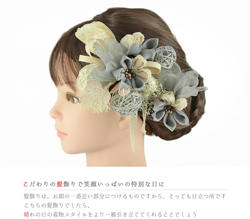 髪飾り 成人式 振袖 前撮り 袴 リボン 花 3点セット つまみ細工 グレー 灰色 ブルーグレー 白 オフホワイト クリーム色 金 玉飾り 組紐 下がり 造花 カスミソウ レース 紐 シフォン 異素材 ミックス コーム Uピン トレンド 華奢 大きい 小さい かんざし 簪 大人 大人可愛い 可愛い 粋 日本製 お洒落 成人式 振袖 前撮り 卒業式 結婚式 入園式 卒園式 謝恩会 七五三 浴衣 お祭り 髪型 ヘアスタイル ヘアアレンジ ドライフラワー 着物 和装 No.9-5252 サイズ表 コーム飾り 縦 約19cm × 横 約13cm × 高さ 約6cm Uピン飾り 縦 約8cm × 横 約7cm × 高さ 約5cm Uピン飾り 玉飾り 玉の直径 約2.5cm