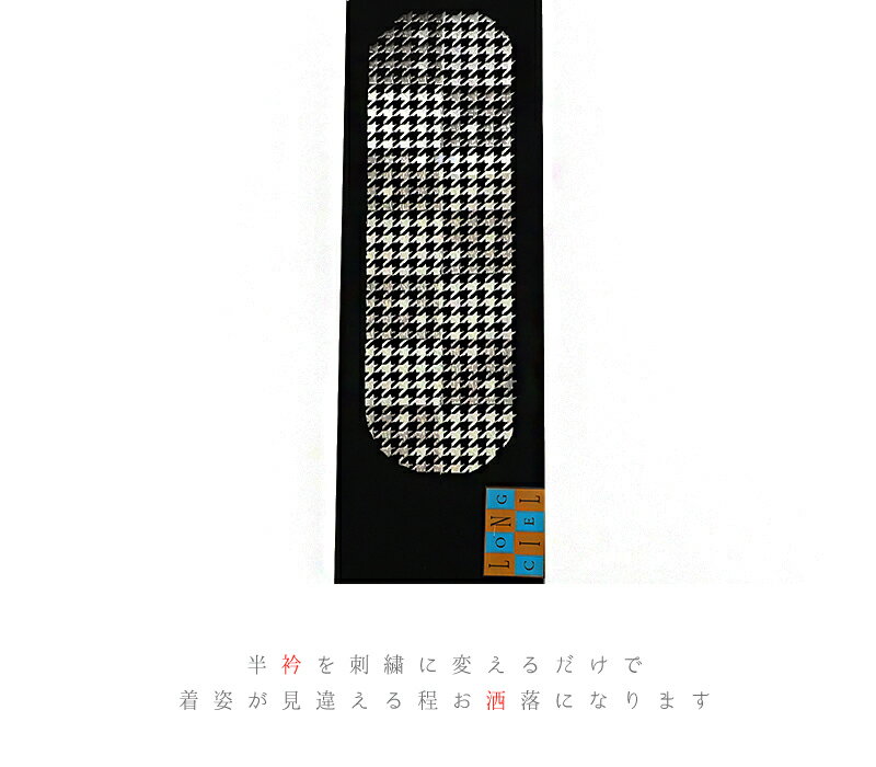 つややかで滑らかな手触りの上品な生地に 千鳥格子の柄が市松模様となって シンプルな柄でも奥行きがありキリっと映える 高級感のある、おしゃれな刺繍衿です。