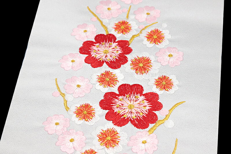 半衿 半襟 振袖 成人式 豪華刺繍 白地 オフホワイト 赤 金 ゴールド ピンク 白 梅 桜 おしゃれ半衿 刺繍半衿 おしゃれ着用 レトロ アンティーク モダン 高級 成人式 結婚式 前撮り 卒業式 謝恩会 入学式 卒園式 入園式 七五三 お宮参り お茶会 パーティー 観劇 可愛い ポリエステル 日本製 着物 和装 No.10-6159 サイズ表 サイズ 長さ:約115cm 幅:約16cm 商品詳細