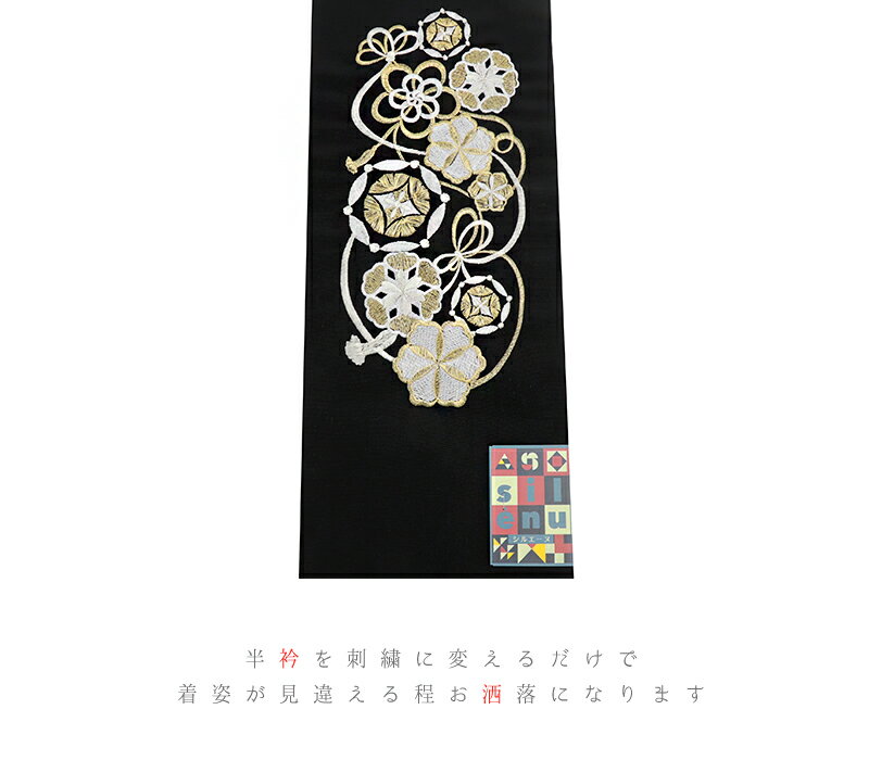 ■おすすめポイント 高級感あふれる、繊細で美しい刺繍が魅力的な 正絹風のなめらかな肌触りと上品な光沢を持ち合わせたポリエステル素材の いくつもコレクションしたくなる、おしゃれ半衿です。