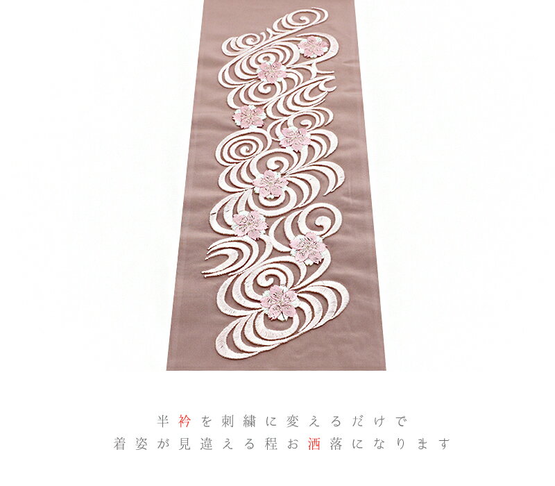 ■おすすめポイント お洒落は小物から・・・ 高級感あふれる、ふっくらと美しい刺繍が魅力的な 正絹風のなめらかな肌触りと上品な光沢を持ち合わせたポリエステル素材の いくつもコレクションしたくなる、お洒落半衿です。