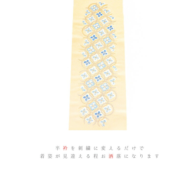 半衿 半襟 振袖 成人式 豪華刺繍 黄色 白 オフホワイト 金 ゴールド 水色 青 七宝繋ぎ 菊菱 ちりめん LongCiel 礼装用 刺繍半衿 クリスタルガラス レトロ アンティーク モダン 高級 成人式 結婚式 前撮り 卒業式 謝恩会 入学式 卒園式 入園式 七五三 お宮参り お茶会 パーティー 観劇 可愛い ポリエステル 日本製 着物 和装 No.10-6413 サイズ表 サイズ 長さ:約115cm 幅:約16cm 商品詳細