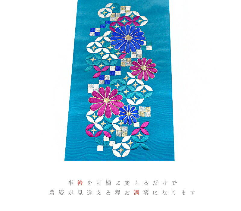 半衿 半襟 振袖 成人式 豪華刺繍 水色 白 オフホワイト 金 ゴールド 青 紫 ピンク 銀 シルバー 菊 七宝繋ぎ 市松 立涌 塩瀬 シルエーヌ 礼装用 刺繍半衿 レトロ アンティーク モダン 高級 成人式 結婚式 前撮り 卒業式 謝恩会 入学式 卒園式 入園式 七五三 お宮参り お茶会 パーティー 観劇 可愛い ポリエステル 日本製 着物 和装 No.10-6328 サイズ表 サイズ 長さ:約115cm 幅:約16cm 商品詳細
