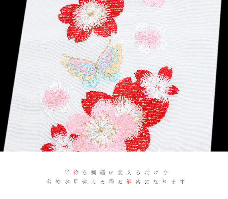 ふっくらとした刺繍でとても高級感があり、女性らしい色使いなので顔周りがパッと明るく華やかになりますよ! 実は衿元や衿合わせは着物姿を見た時に最も目が行くポイントといっても過言ではありません。