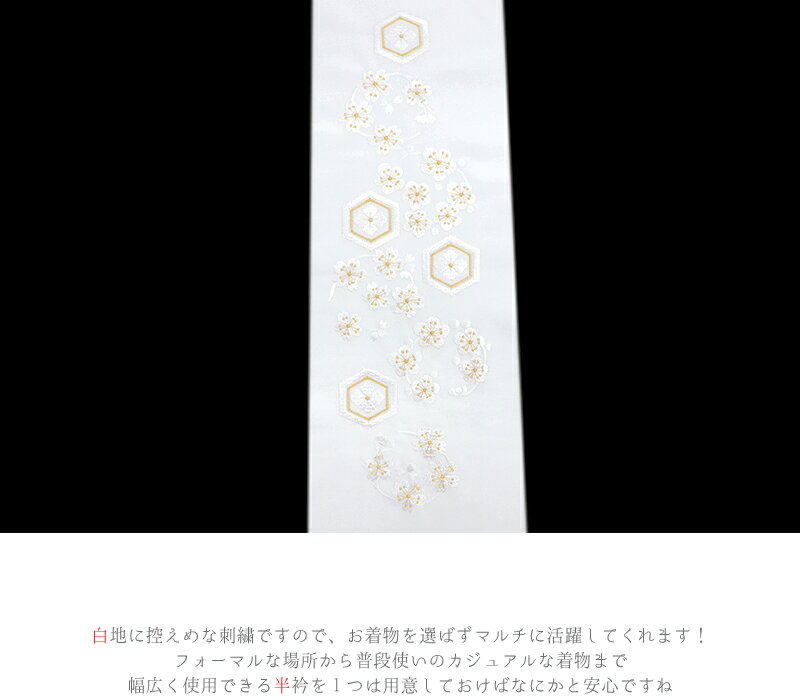 半衿 半襟 振袖 成人式 豪華刺繍 塩瀬 白地 オフホワイト ゴールド 金 花 桜 さくら 亀甲 和柄 おしゃれ半衿 刺繍半衿 お洒落着用 レトロ アンティーク モダン 高級 成人式 結婚式 前撮り 卒業式 謝恩会 入学式 卒園式 入園式 七五三 お宮参り お茶会 パーティー 観劇 かわいい ポリエステル 日本製 着物 和装 No.8-2863 サイズ表 サイズ 長さ:約116cm 幅:約15.5cm 商品詳細