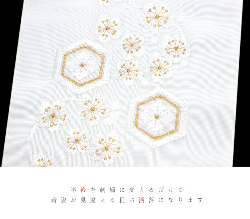 ふっくらとした刺繍でとても高級感があり、シンプルで上品な色使いなので顔周りがパッと明るく華やかになりますよ! 実は衿元や衿合わせは着物姿を見た時に最も目が行くポイントといっても過言ではありません。