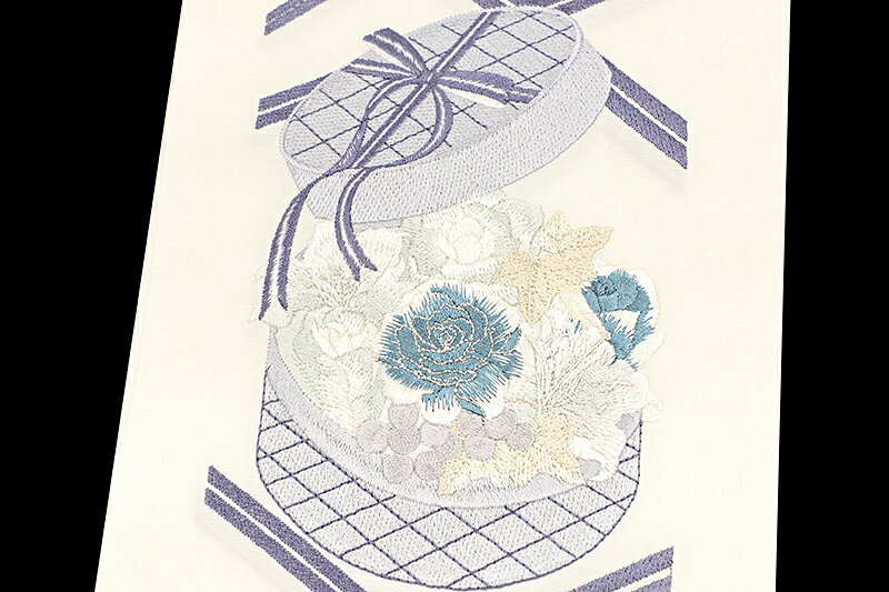 半衿 振袖 成人式 訪問着 刺繍 オフホワイト 礼装用 塩瀬 紫 青 水色 緑 白 黄色 バラ 薔薇 ユリ 葡萄 ボックスフラワー 花かご 結婚式 前撮り 卒業式 謝恩会 入学式 卒園式 入園式 七五三 お宮参り お茶会 パーティー 観劇 日本製 ポリエステル 着物 和装 半襟 レトロ アンティーク モダン 高級 可愛い シルエリー Silelly No.10-6546 サイズ表 サイズ 長さ:約112cm 幅:約16cm 商品詳細