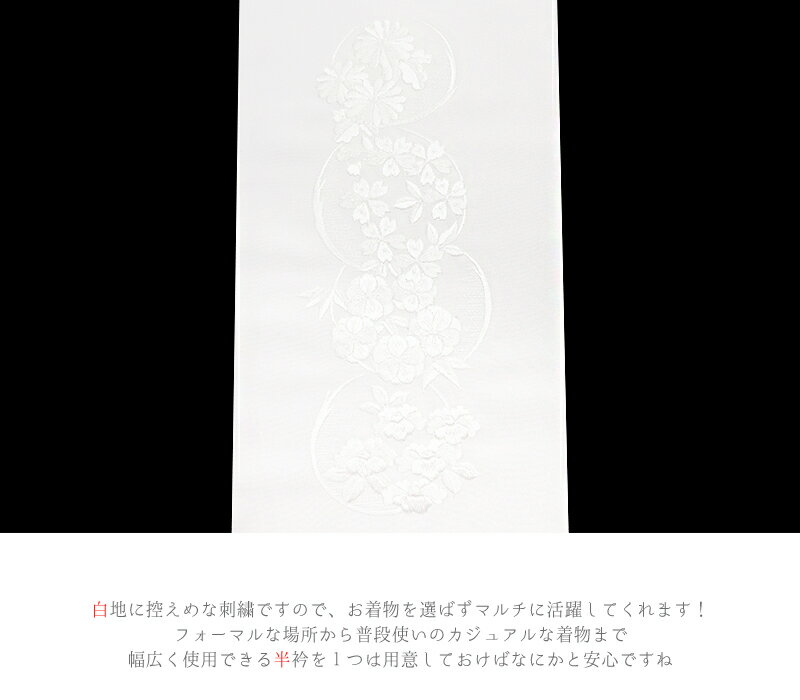 半衿 振袖 成人式 訪問着 刺繍 白地 礼装用 黒留袖 塩瀬 梅 桜 笹 牡丹 月 結婚式 前撮り 卒業式 謝恩会 入学式 卒園式 入園式 七五三 お宮参り お茶会 パーティー 観劇 日本製 ポリエステル 着物 和装 半襟 レトロ アンティーク モダン 高級 可愛い No.10-6591 サイズ表 サイズ 長さ:約114cm 幅:約16cm 商品詳細