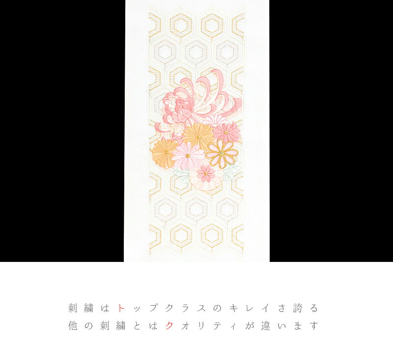 刺繍の華やかさが、お顔周りをいっそう明るくし 着物姿を一段と素敵に演出してくれます。