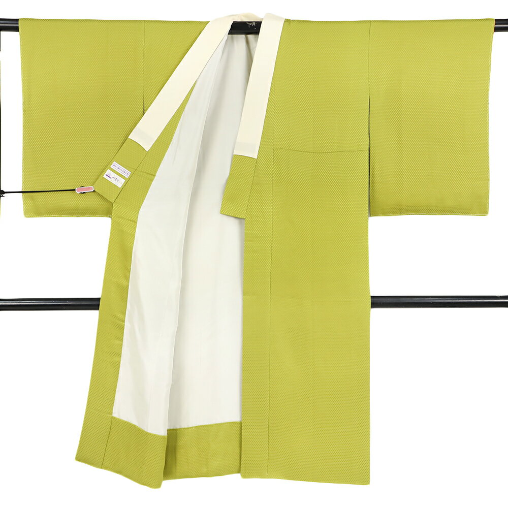 【中古】 襦袢 正絹 リサイクル 黄緑 綸子 鱗 身丈128cm 裄丈66cm Lサイズ 新古品 仕立て上がり カジュアル 着物 No.i3-0830 サイズ表 サイズ cm サイズ Lサイズ 身丈(肩から) 約128cm(3尺3寸8分) 裄 約66cm(1尺7寸4分) 袖丈 約55cm(1尺4寸5分) 袖幅 約34cm(8寸9分) 前幅 約27cm(7寸1分) 後幅 約32.5cm(8寸5分) 折込 裄の折込は、身頃側1cm出せ、袖側は出せません。