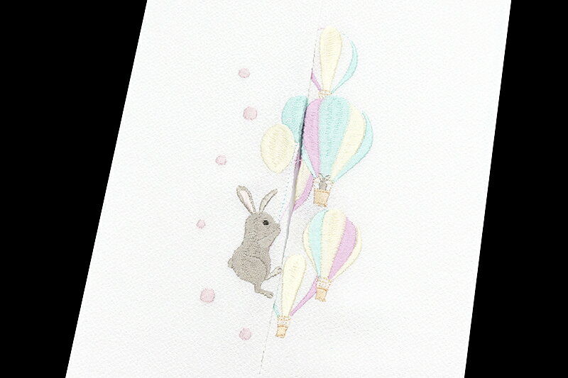 ■新品・未使用品 コメント 風船を持ち飛び立つウサギと、ふわりと浮かぶ色とりどりの気球たち。