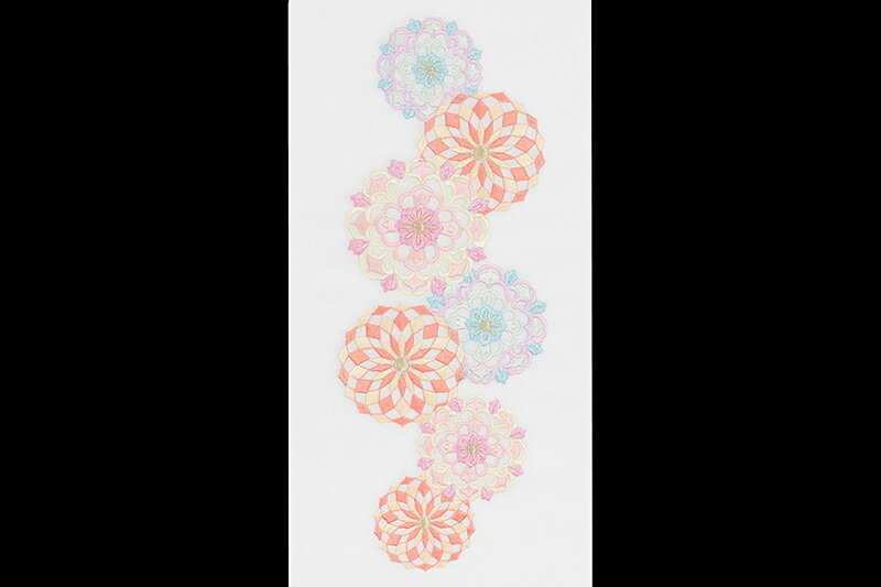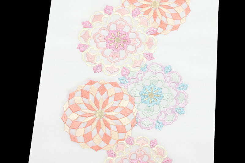 ■カラー ・地色:すっきりとした白 ・刺繍糸:落ち着きのあるサーモンピンク、オレンジ 華やかなピンク 透明感のある水色、緑 など